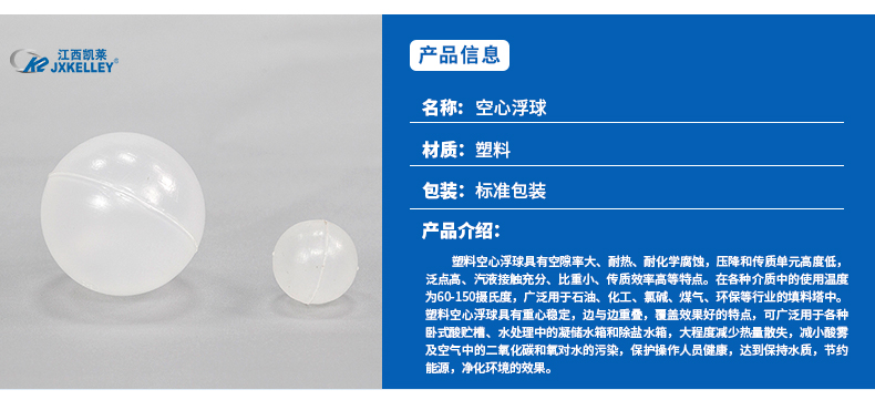 塑料空心浮球具有空隙率大,耐热,耐化学腐蚀,比重小等特点。在各种介质中的使用温度为60-150度,塑料空心浮球可以大程度减少热量散失,减小酸雾及空气中的二氧化碳和氧对水的污染,达到保持水质,节约能源,净化环境的效果。塑料空心浮球具有重心稳定,边与边重叠,覆盖效果好的特点。塑料空心浮球广泛用于石油、化工、电镀厂行业等行业的填料塔中。